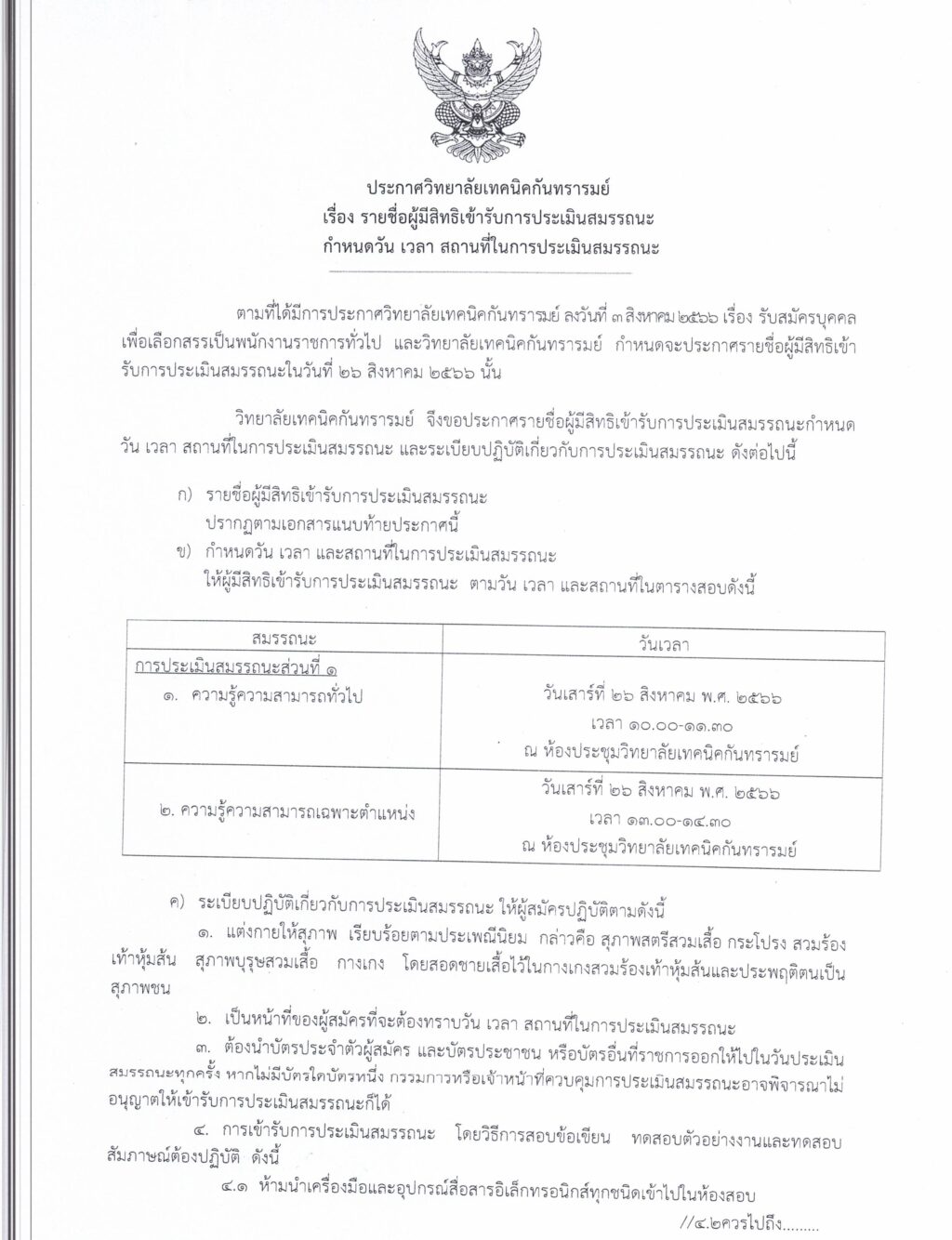 ประกาศวิทยาลัยเทศนิคกันทรารมย์ เรื่อง รายชื่อผู้มีสิทธิเข้ารับการประเมินสมรรถนะ กำหนดวัน เวลา สถานที่ในการประเมิน สมรรถนะ เพื่อเลือกสรรพนักงานราชการทั่วไป